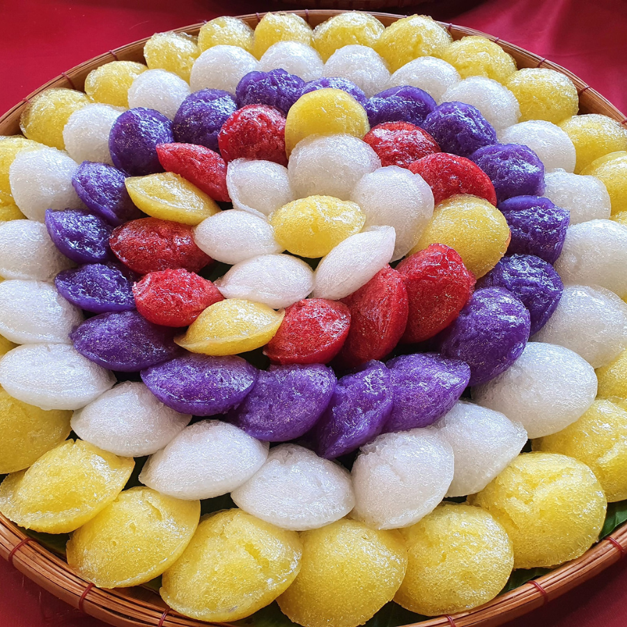 • Đổ khuôn và hấp 15–20 phút đến khi chín
