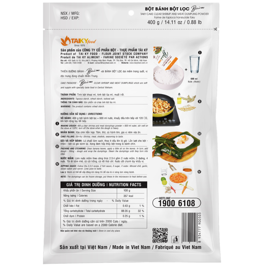 Bột bánh lọc pha sẵn tiện lợi, giúp làm bánh trong suốt – dai mềm – chuẩn vị miền Trung chỉ với vài bước đơn giản. Phù hợp cho gia đình và kinh doanh.